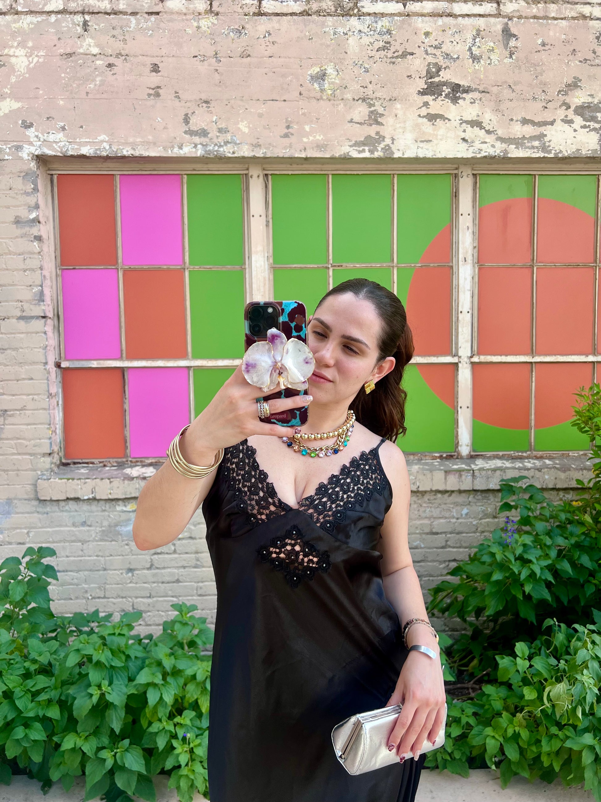 She’s a free spirit with sharp edges Gitana Tropical dances in soft white with scattered purple spots, a touch of yellow at her heart, and gold trim that glows in the sun. Snap her on when you’re feeling bold, pop her off when it’s time to ghost. MagSafe, effortless, and made for the rebel flor who follows no rules but her own.